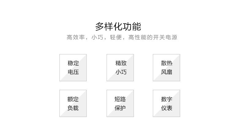 大功率直流电源,采用PWM优化高频调制双内环控制技术,将大功率电源的电压和电流展宽,实现了电压和电流的额定值连续调节,控制芯片采用美国SG芯片系列,功率部件采用德国英飞凌西门康大功率品牌模块系列,可靠性更高。机箱采用优质冷板,表面喷塑,数控加工,外观高档。直流电源整机体积小,重量轻,功率大,精度高,能适应阻性,感性,容性等各种负载,操作简单,电压电流可调,抗短路冲击,可加装预置功能,外控功能,适合无线对讲系统、车载台、基地台、中继台等使用!